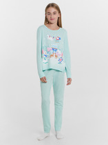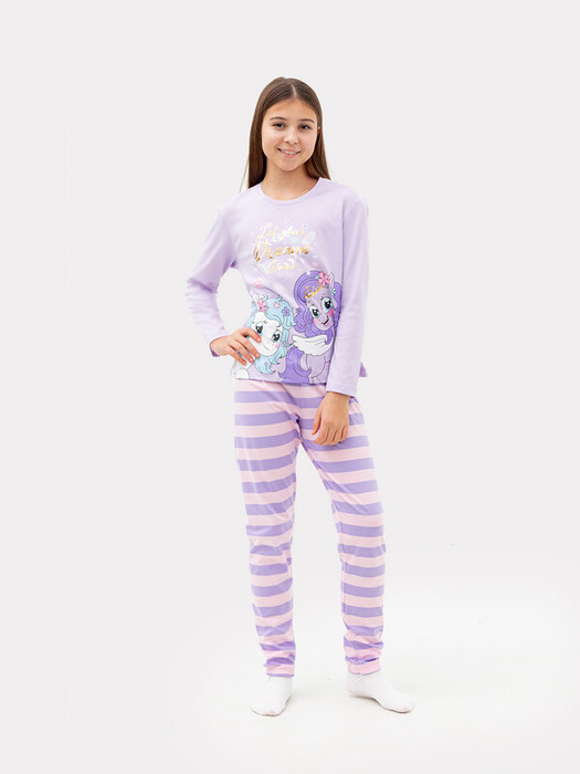 Горловина круглой формы с притачной обтачкой из основного полотна. Рукава длинные втачные. Перед и спинка цельнокроеные. Низ джемпера и рукавов обработан швом в подгибку. Брюки длинные, немного заужены к низу. Пояс цельнокроенный с эластичной тесьмой внутри. Низ брюк застрочен с эластичной тесьмой внутри.