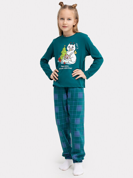 Горловина круглой формы с притачной обтачкой из основного полотна. Рукава длинные втачные. Перед и спинка цельнокроеные. Низ джемпера и рукавов обработан швом в подгибку. Брюки длинные, немного заужены к низу. Пояс цельнокроенный с эластичной тесьмой внутри. Низ брюк застрочен с эластичной тесьмой внутри.