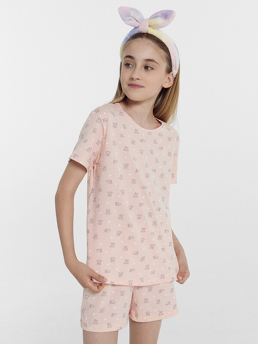 Пижама для девочек. Выполнена из трикотажной кулирки. Состоит из футболки и шортиков. Футболка свободная, с круглой горловиной, короткими рукавами. Шорты свободные, длиной до колен, пояс с эластичной тесьмой внутри. В такой пижамке сны будут действительно приятными!