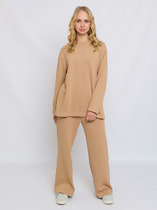 Комплект для самых модных девочек. Выполнен из трикотажного футера без подчеса. Анорак свободного силуэта с капюшоном, спущенной линией плеча, манжетами и поясом из рибаны. Брюки прямого силуэта, с резинкой и регулировочным шнурком в поясе, на манжетах. Уютный комплект!