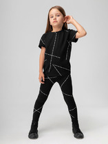 Рукава длинные. Линия плеча спущена. Горловина обработана обтачкой из рибаны. По низу рукавов и джемпера притачены манжеты и пояс из рибаны Брюкид для девочек свободного силуэта. Пояс отрезной из основного полотна с эластичной тесьмой внутри 50RV. По поясу проложены отделочные строчки. Низ брюк обработан швом в подгибку.