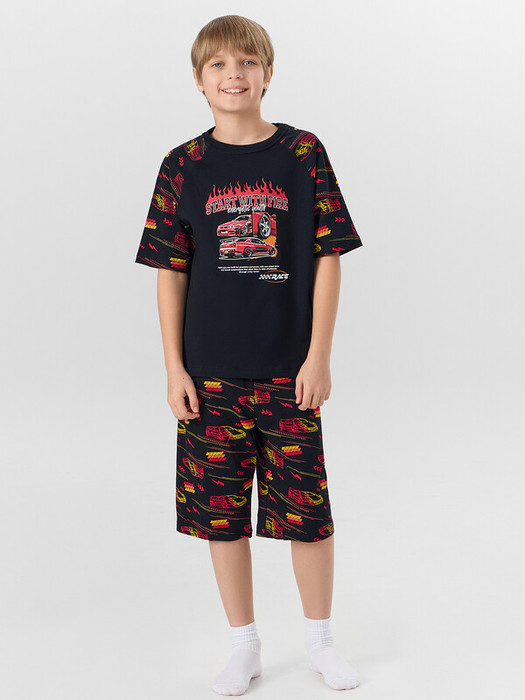 Комплект для мальчиков состоит из джемпера и шортов.