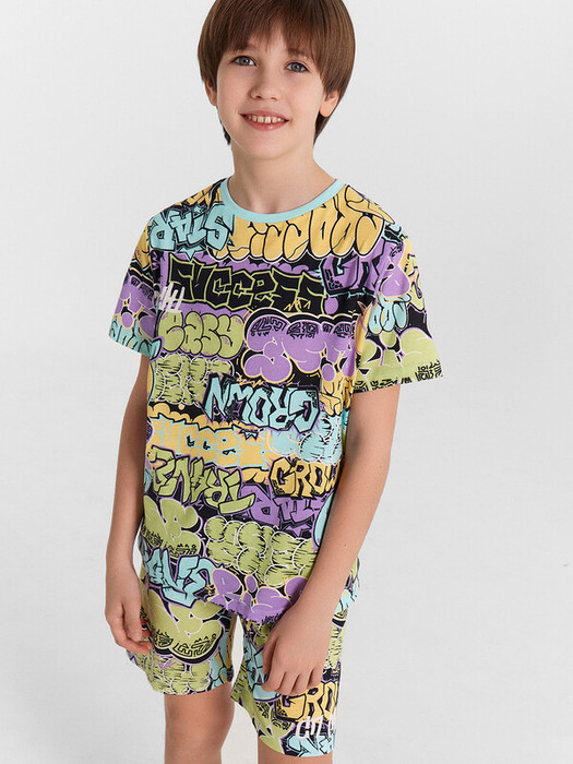 Пижама для мальчиков - это отличный комплект для сна и отдыха. Футболка имеет круглую горловину и короткие рукава, обеспечивающие комфорт и свободу движений. Шорты длиной до колен оснащены эластичной тесьмой в поясе для надежной посадки. Модель выполнена из хлопковой кулирки - натурального материала, который обладает отличной воздухопроницаемостью и мягкостью. Благодаря этим свойствам, такая пижама идеально подходит для сна и отдыха, создавая уют и комфорт в любое время года.