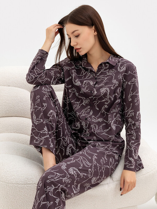 Совместные покупки Нижний Тагил Женская одежда Пижамы, халаты — Mark Formelle КОМПЛЕКТ ЖЕНСКИЙ (БЛУЗКА, БРЮКИ) 592462 592462 кони на цвете кора