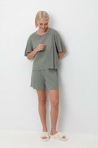 Ощутите истинную нежность нашем новом кружевном комплекте для сна. Топ полуприлегающего силуэта идеально подчеркивает фигуру, а V-образная горловина придает образу изящность. Регулируемые бретели с силиконовой тесьмой внутри обеспечивают максимальный комфорт, а спинка из кружева добавляет нотку романтичности. Также силиконовая тесьма в боковых деталях чашек и спинки гарантирует дополнительную поддержку. Шортики мини позволяют свободно двигаться и ощущать легкость. А нижние детали из микрофибры, обработанные в подгибку, гарантируют мягкость и долговечность. Такой комплект идеально подходит как для повседневного ношения, так и для особенных моментов. Почувствуйте себя уверенной и привлекательной в кружевном комплекте от Mark Formelle.
