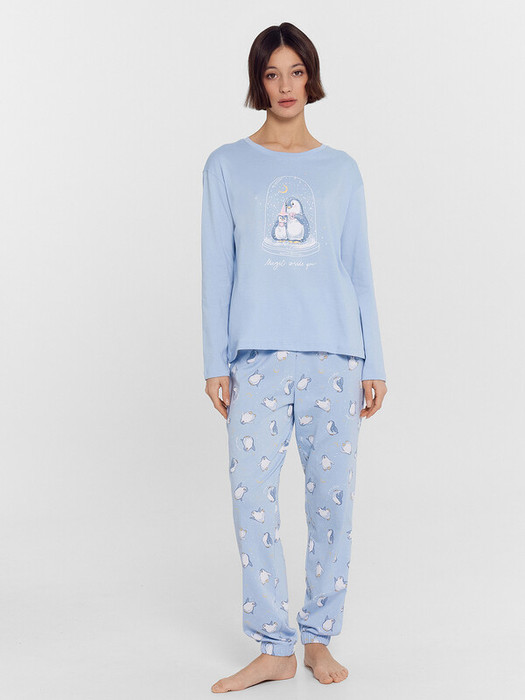Совместные покупки Нижний Тагил Женская одежда Пижамы, халаты — Mark Formelle КОМПЛЕКТ ЖЕНСКИЙ (ДЖЕМПЕР, БРЮКИ) 592510 592510 голубой +пингвины
