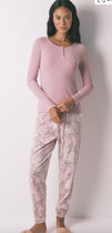 Горловина круглой формы с притачной обтачкой из основного полотна. Рукава длинные втачные. Перед и спинка цельнокроеные. Низ джемпера и рукавов обработан швом в подгибку. Брюки длинные, немного заужены к низу. Пояс цельнокроенный с эластичной тесьмой внутри. Низ брюк застрочен с эластичной тесьмой внутри.