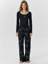 Джемпер прямого кроя с круглой горловиной и короткими рукавами не сковывает движения, а аккуратная обработка швов гарантирует комфорт. Брюки с высокой посадкой и широким эластичным поясом мягко фиксируются на талии, а практичные карманы-«хулиганы» добавляют функциональности.