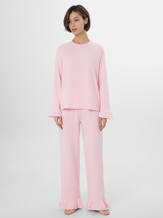 Рукава реглан длинные, по низу рукавов манжеты в виде рюш из основного полотна, низ манжет обработан
