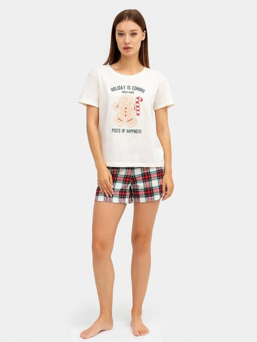 Совместные покупки Нижний Тагил Женская одежда Пижамы, халаты — Mark Formelle КОМПЛЕКТ ЖЕНСКИЙ (ДЖЕМПЕР, ШОРТЫ) 592325 592325 молочный +клетка н