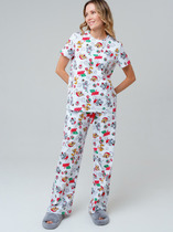 Комфортная пижама женская в "костюмном стиле" из высококачественного хлопка для приятных снов и домашних дел. Жакет прямой, с отложным воротником и лацканами, короткими рукавами, застегивается на пуговицы. Дополняют его свободные шорты длины мини, с резиновой тесьмой в поясе и атласной тесьмой, которая завязывается на бантик. Особенность модели – контрастные канты на рукавах, воротнике и передней части рубашки. В пижаме абсолютно не жарко, комфортный материал не сковывает движений. Красивая и интересная модель на каждый день. В линейке много актуальных расцветок, широкий размерный ряд, есть варианты для девушек с пышными формами plus-size. Лучший выбор домашней одежды на каждый день от Mark Formelle. Рекомендуем!