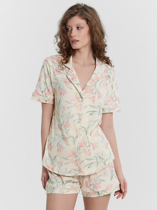 Совместные покупки Нижний Тагил Женская одежда Пижамы, халаты — Mark Formelle КОМПЛЕКТ ЖЕНСКИЙ (ЖАКЕТ, ШОРТЫ) 592478 592478 лилии на сливочном 1