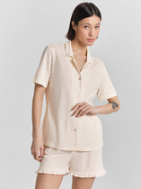 Женская пижама свободного силуэта создаст комфорт и стиль в вашем домашнем гардеробе. Рубашка прямого кроя с отложным воротником и лацканами, застегивающаяся на пуговицы, дополнена короткими рукавами для легкости и удобства. Свободные шорты длины мини с эластичным поясом и атласной тесьмой, которая завязывается на бантик, добавляют очарования и обеспечивают комфортную посадку. Контрастные канты на рукавах, воротнике и передней части рубашки подчеркивают уникальный стиль и добавляют изысканности. Эта пижама идеально подходит для сна, отдыха и домашних дел, предлагая вам комфорт и стиль в каждой детали. Рекомендуем для создания уютных и элегантных образов для дома!