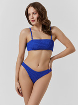Бюстгальтер купальный бандо, со съемными бретелями. Лиф на подкладке, со съемными чашками-вкладышами  (GNv-15m).  Верхний и нижний срезы обработаны швом вподгибку с эластичной резиновой тесьмой внутри 10 мм. Съемные бретели из основного полотна с эл резиновой тесьмой 7 мм внутри, с регулировкой по длине. Регуляторы (2 шт) и застежки-крючки (4 шт) металлические с гальваническим покрытием. Бретели крепятся к бюстье черз петлю, заготовленную из парфюмерной ленты.