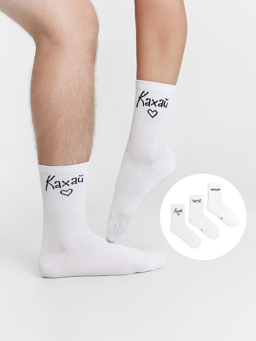 рис.2860 Мультипак из трех пар унисекс носков, высоких с плотным бортом и рисунком в виде надписей на паголенке.