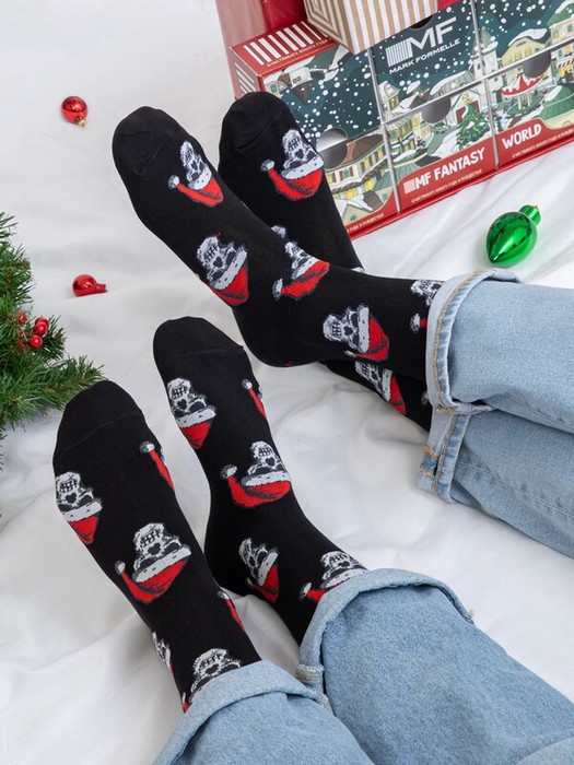рис.1443 Носок классический гладкий с рисунком в виде новогодних черепов.