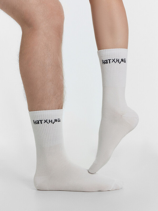 рис.2863 Носок высокий с плотным бортом и рисунком в виде надписи.
