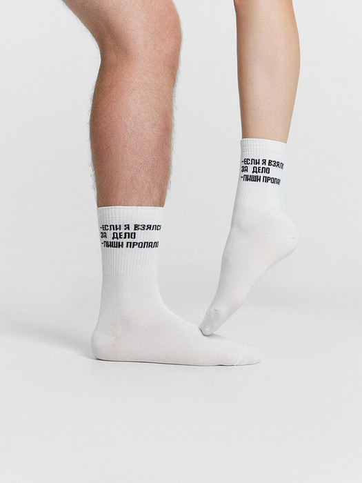 рис.2864 Носок высокий с плотным бортом и рисунком в виде надписи "Если взялся за дело..."