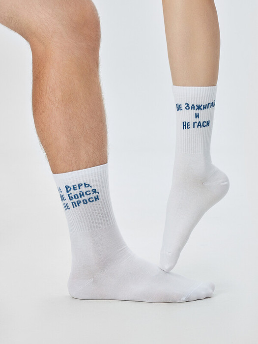 рис.3236 Носок высокий с плотным бортом и рисунком в виде надписи "Не верь Не бойся Не проси".