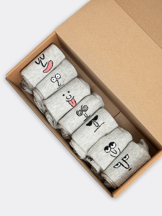 рис.1633 Мультипак из классических гладких носков с плотным бортом средней высоты и с рисунками в виде выражений эмоций. Упаковка в большую коробку на 7 пар.