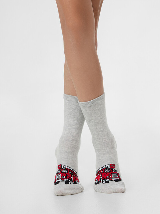 рис.3071  Детские классические носки с рисунком в виде пожарной машины.