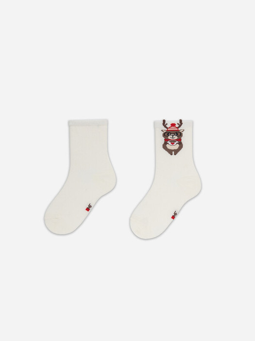 рис.3389 Детские классические носки с рисунком в виде оленей и пикотом на бортике.