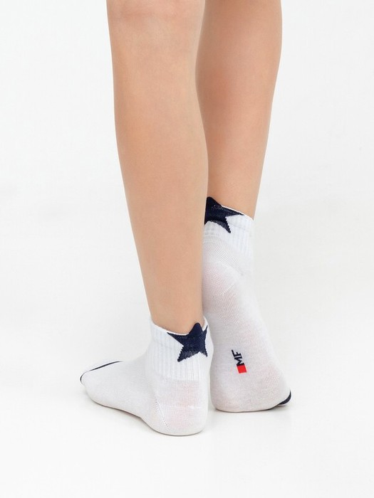 Гладкий детский носок с резинкой средней высоты и рисунком в виде контурной звезды, выступающей за границы носка. Необычно!