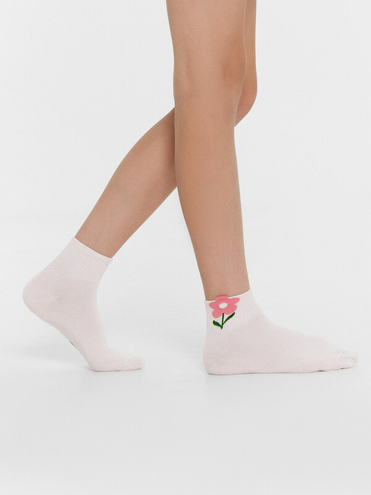 рис.2772 Гладкий детский носок с резинкой средней высоты и объёмным рисунком в виде цветка.