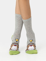 рис.1957 Детский носок гладкий суперкороткий с рисунком в виде тигриной мордочки и 3D рисунком.