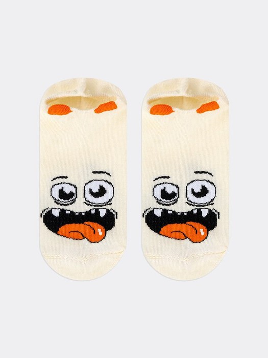 рис.2366 Детский носок гладкий суперкороткий с рисунком в виде мордочки монстра и 3D рисунком