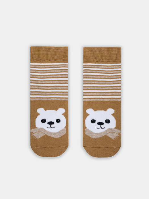 рис.2883 Детский махровый носок с рисунком в виде медведя и полосок.