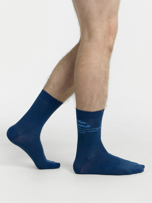 рис.2488 Мужской носок классический, высокий с рисунком в виде надписи "Добро-Душный...".