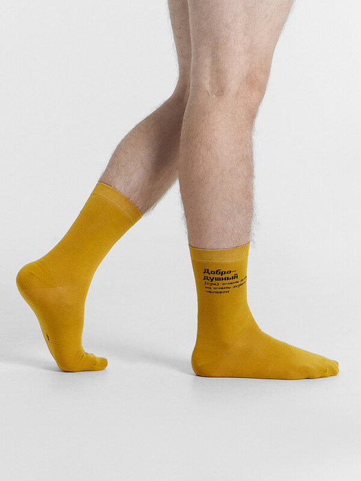 рис.2488 Мужской носок классический, высокий с рисунком в виде надписи "Добро-Душный...".