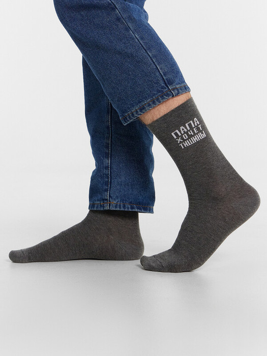 рис.2638 Мужской носок классический, высокий с рисунком в виде надписи " Папа хочет тишины".