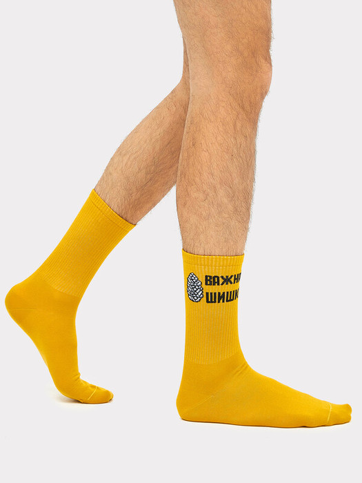 Рис.2674 Мужской носок с высоким плотным бортом и рисунком в виде шишки с надписью "ВАЖНАЯ ШИШКА".