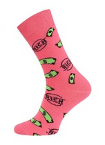 рис.2129  Мужской однотонный носок с высоким плотным бортом и махровой стопой, с рисунком в виде шапочки и надписи "Тепленько".