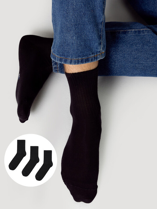 Рис.3084  Мультипак из трех пар мужских однотонных мужских носков средней длины и резинкой на поголенке.