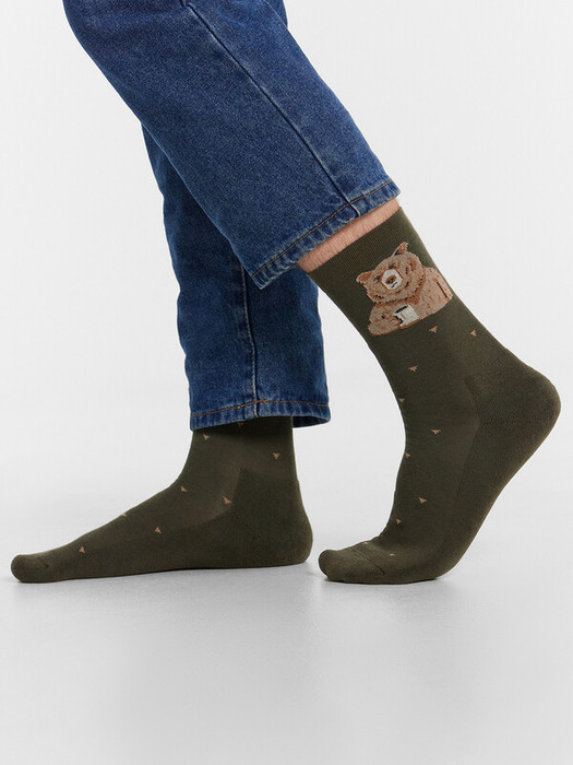 рис.2943 Мужской носок классический высокий с махровой стопой и рисунком в виде медведя.