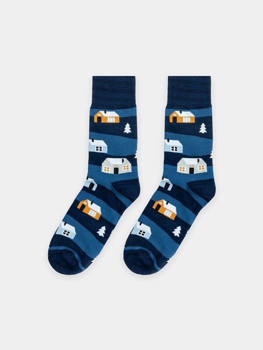 рис.2505 Классический махровый мужской носок с рисунком в виде домиков.