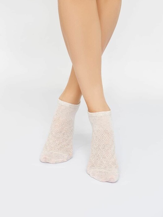 рис.1978  Женский носок суперкороткий из пряжи хлопок/лен с ажурным рисунком.