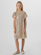 Платье полуприлегающего силуэта, длиной выше колен. Перед и спинка цельнокроенные. Горловина круглой формы. Обработана воротником из текстильного полотна. По спинке застежка на молнию. Рукава короткие. По низу рукавов манжеты из текстильного полотна. Низ изделия обработан на 2-х игольной плоскошовной машине швом в подгибку.