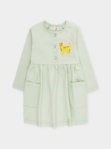 Платье свободного силуэта. Горловина круглой формы обработана обтачкой из рибаны. Шов притачивания рибаны распошит. Рукава длинные, втачные, внизу на сборке. Линия плеча спущена. По низу рукавов притачные манжеты из рибаны. Центральный шов по спинке с разрезом снизу. Низ изделия обработан на 2-х игольной плоскошовной машине швом в подгибку. Длина платья выше колена.