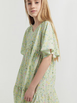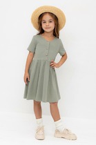 Платье прямого силуэта, с отрезным воланом по талии. Круглый вырез горловины.