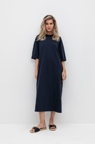 Платье свободного силуэта из футера. Платье имеет длину "миди" и удлиненную линию плеча. Изюминка модели – изящные боковые разрезы, которые очень популярны в текущем сезоне. Рукава короткие, вырез горловины круглый. Стильно!