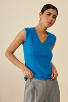 Платье изготовлено из текстильного полотна. Платье на  бретельках полуприлегающего силуэта, длиной до колен. Перед и спинка с вертикальными рельефами. В левом боковом шве обработана застежка на потайную молнию. Верхний срез лифа обработан обтачкой из осн. полотна. Низ платья обработан швом вподгибку.
