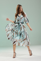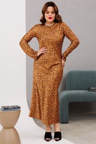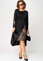 Прилегающее женское платье длиной ниже колена. Выполнено из трикотажной рибаны – в рубчик. Вырез круглый, с чуть удлиненным воротником. Рукава узкие, слегка удлиненные. От линии бедер платье расширяется и завершается асимметричным нижним краем. Красиво!