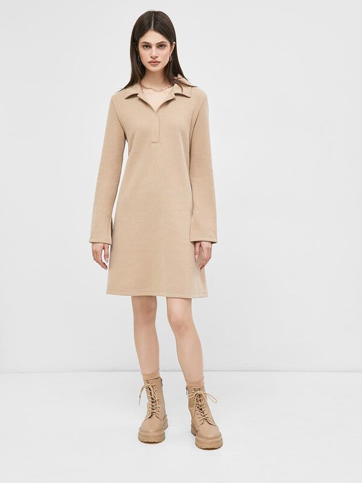 Однотонное женское платье А-образного силуэта из селаника – невероятно нежного трикотажного полотна. Верх прилегающий, к низу платье расширяется. Вырез круглой формы, с воротничком. Планка ниже линии груди застрочена. Рукава длинные и узкие, с небольшим расширением по низу и разрезами. Длина платья – чуть выше колена.