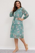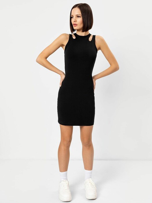 Платье прилегающего силуэта из трикотажного полотна кулирка. Горловина круглой формы. От плечевого шва идут фигурные вырезы.