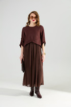 Горловина круглой формы, обработана обтачкой из основного полотна.
