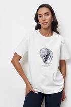 Платье женское прямого силуэта из  трикотажного полотна селаник. Горловина круглой формы, с  притачным воротником с отрезной стойкой из поплина и застежкой на пуговицу. Плечо слегка спущено, пройма углублена. Рукав втачной, длинный, по низу с отрезной манжетой из селаника. Платье длиной чуть выше колена.